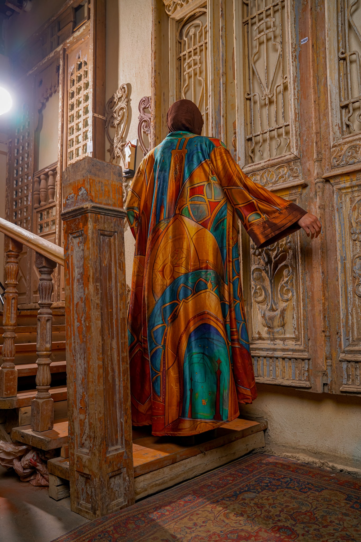 قفطان مستوحى من روح العمارة الإسلامية في مساجد مصر القديمة.